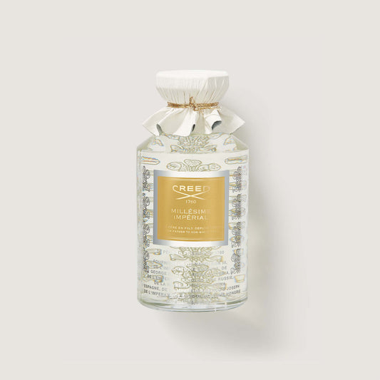 Enjoy more of what you love with an elegant flacon from The House of Creed. These larger fragrance bottles of 240ml or more are true statement pieces, lavishly adorned with a gold fleur-de-lis pattern that echoes th...
