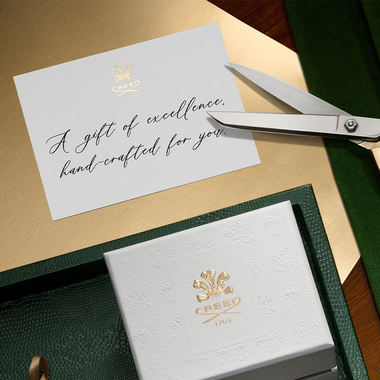At the House of Creed, our signature packaging option is simply exquisite and designed specifically for an opulent gifting experience. Your order will come encased in a luxurious gift box, embellished with a Creed ribbon, perfect for gifting with no need for extra wrapping from yourself.*(4)