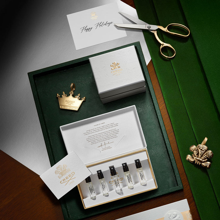 Our collection of online exclusive Creed sample sets for Men & Women have been specifically designed to help you discover your next fragrance from the comfort of your home. With a variety of sample sets to choose from, each fragrance wardrobe comes complete with a selection of five Creed samples for you to explore. Ideal for discovering a new signature scent for yourself, our Sample Sets also come beautifully encased in a luxurious gift box, making them perfect for gifting to a friend too.