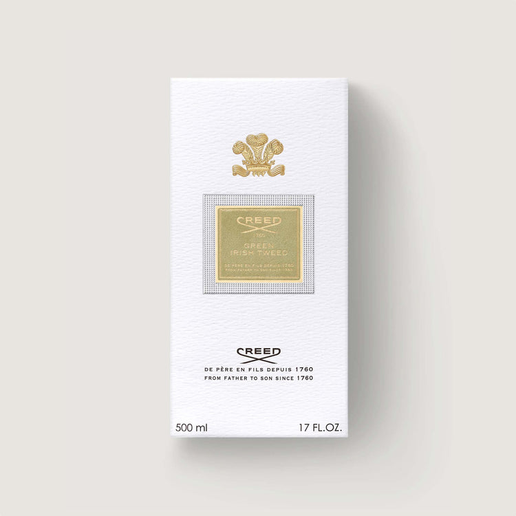 Green Irish Tweed is housed in The House of Creed’s signature bottle that traces the shape of a classic gentleman’s hip flask. The deep, almost blackened green bottle mirrors the fresh and natural composition within. It also evokes a sense of refinement, reinforcing the fragrance’s enduring appeal.